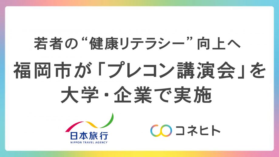 コネヒト株式会社(本社:東京都中央区、代表取締役 杉井信一郎、以下「コネヒト」)は、福岡市の令和7年度「プレコンセプションケアに関する情報発信事業」を株式会社日本旅行(本社:東京都中央区、代表取締役社長 吉田圭吾、以下「日本旅行」)とともに大学・企業でプレコンセプションケア講演会を開始します。